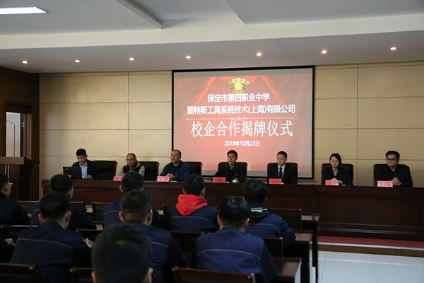 10月23日下午,在全校師生的見(jiàn)證下,保定市第四職業(yè)中學(xué)與上海圖斯特工具系統(tǒng)技術(shù)有限公司校企合作授牌儀式。